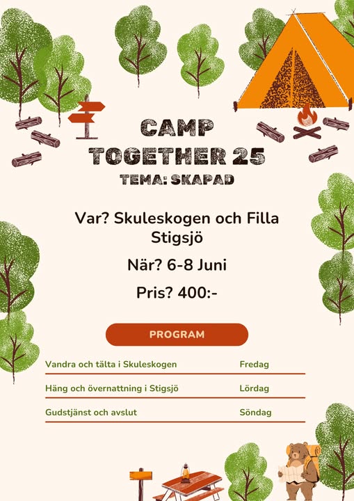 6-8 juni har vi ett miniläger tillsammans som en avslutning på våren och start på sommaren.